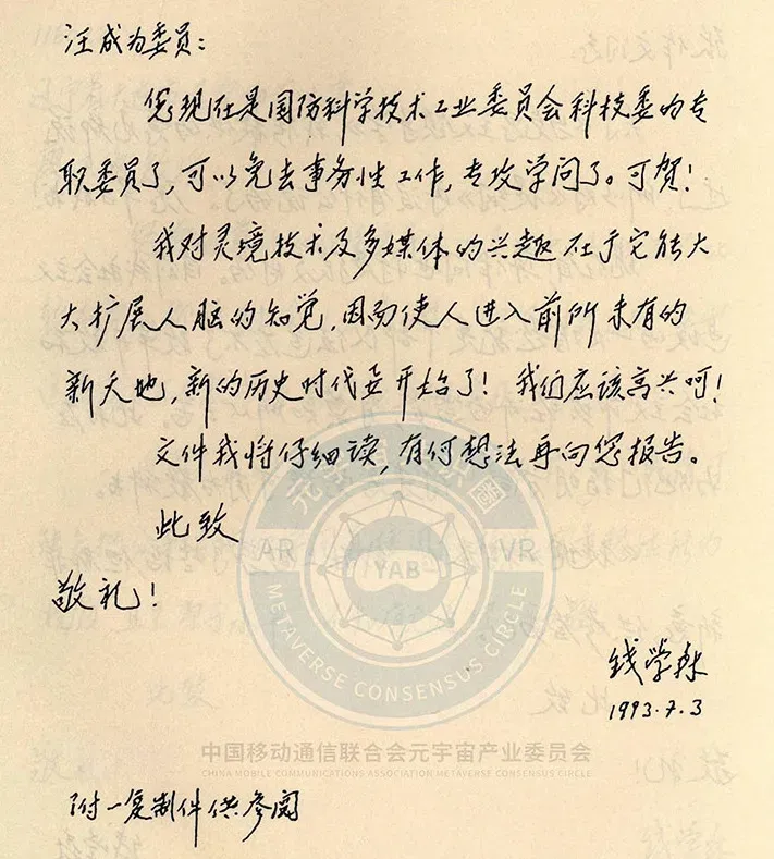 他还说,“我特别喜欢‘灵境’,中国味特浓。”钱学森在另外两封信中分别写道:“(灵境技术)能大大扩展人脑的知觉,使人进入前所未有的新天地,新的历史时代要开始了!”