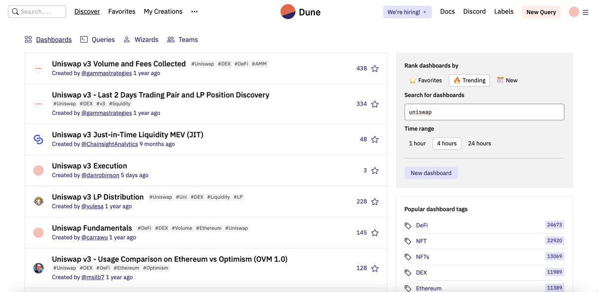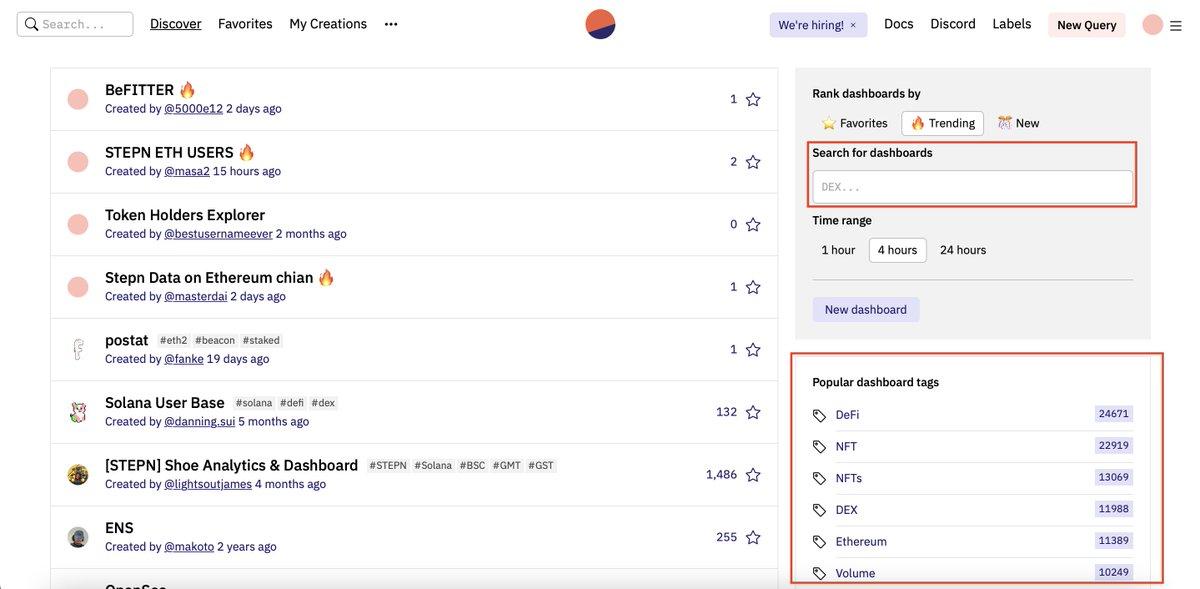 你可以搜索特定的控制面板,并使用DeFi、NFT和以太坊等标签对其进行过滤。