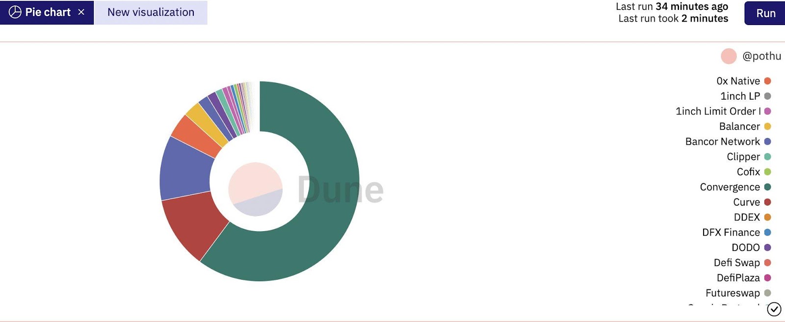 在由此产生的可视化视图中,我们可以看到不同DEX在指定时间段内的市场份额。