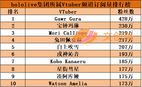 文创潮注意到,hololive早期出道的成员如今依旧活跃,且占据粉丝量榜单前排,成为发展的长期支柱。
