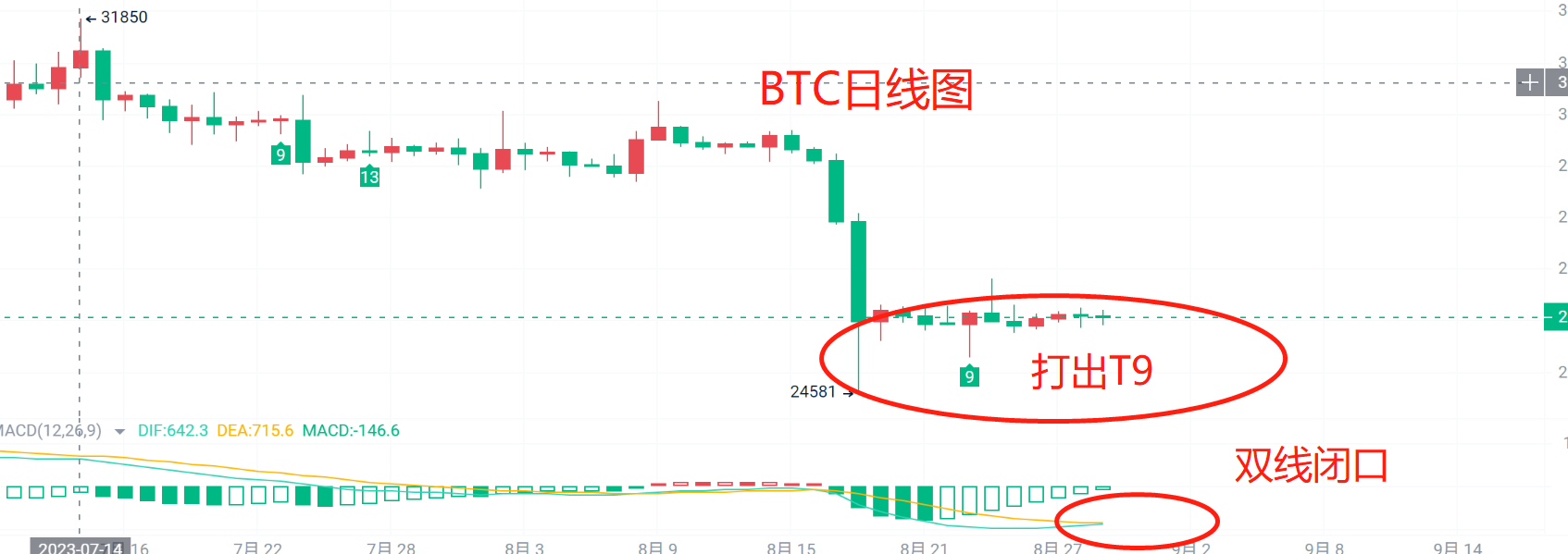 同时日线结构MACD开始闭口,主图处于T9附近,技术面有修复需求。继续观察26800附近的阻力区,若反弹不能彻底站稳,BTC再次探底的风险就不会解除