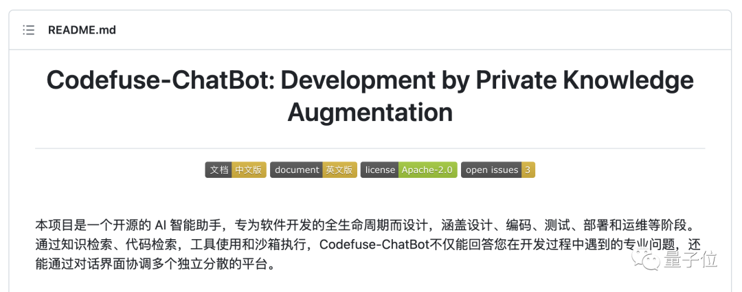 这个AI助手名为DevOps-ChatBot,由蚂蚁Codefuse项目组研发,安装过程简单快速,还可通过docker完成一键部署。