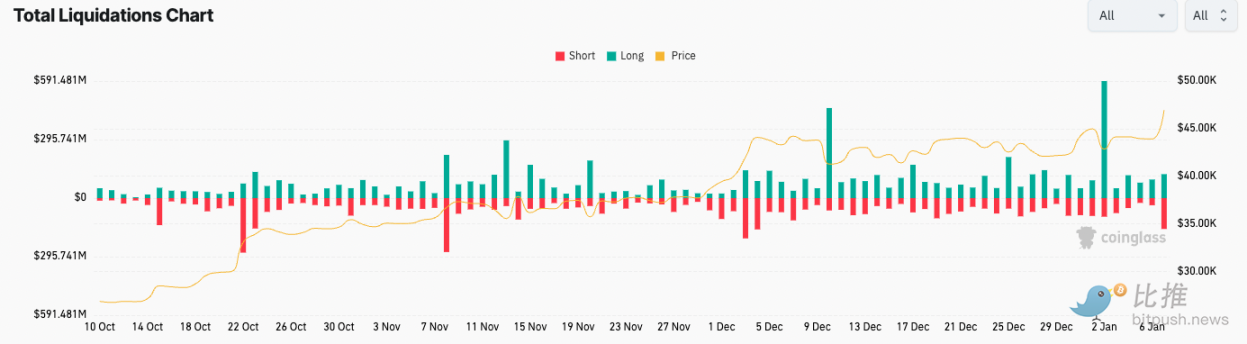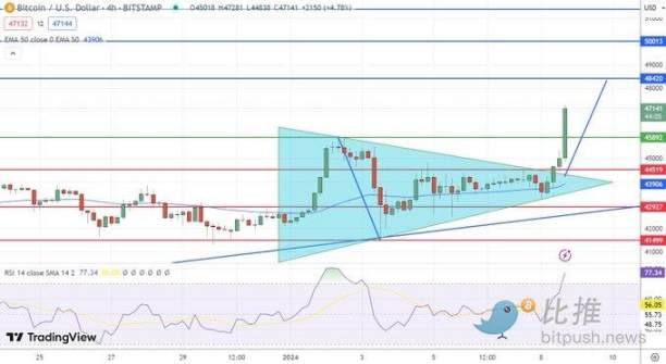 在美国现货比特币 ETF 获批情绪的助推下,比特币在周一美股交易时段突破 4.7 万美元,创下近 20 个月高点,上一次 BTC 交易价超过 4.6 万美元还是在 2022 年 4 月。