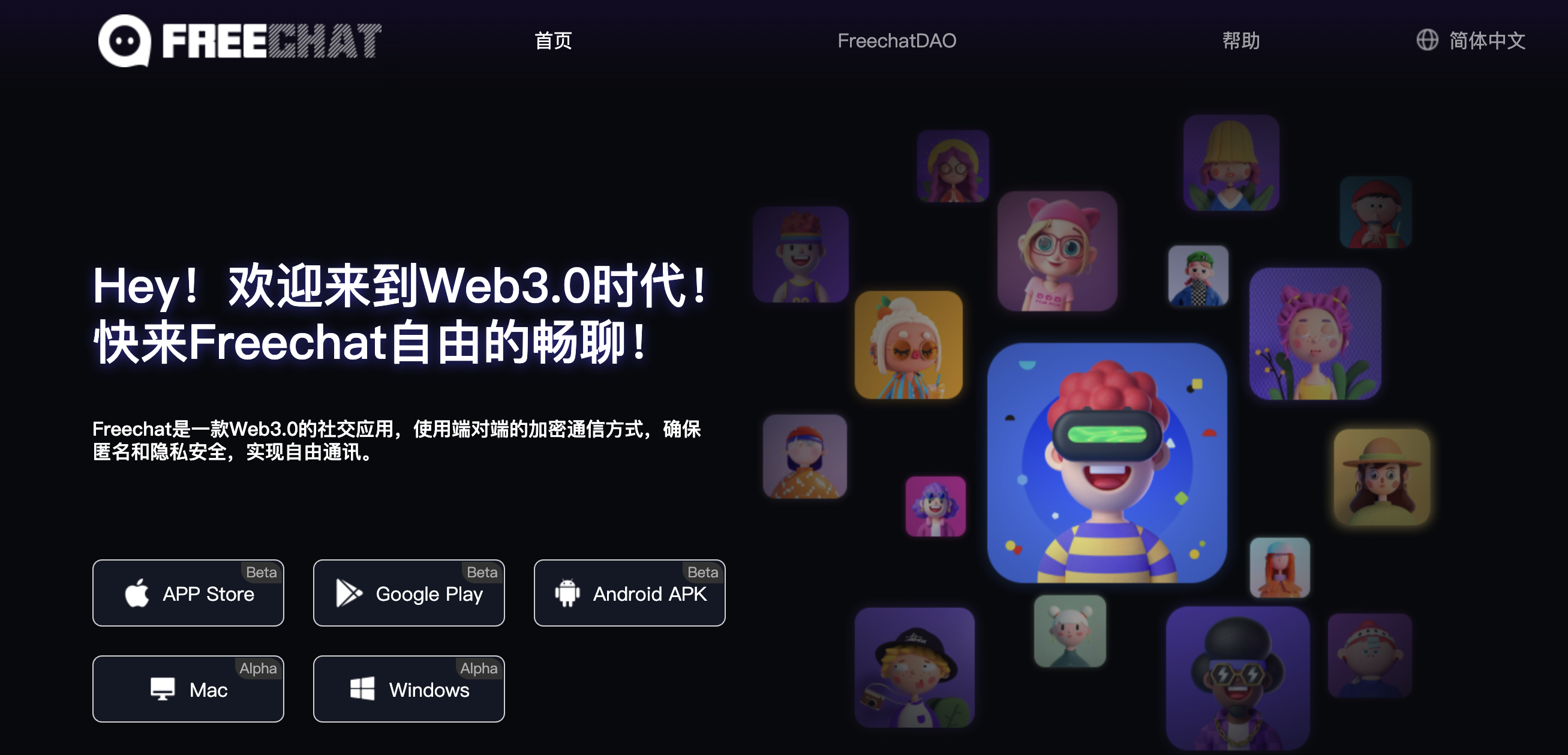 Freechat官网显示,其是一款Web3.0的社交应用,使用端对端的加密通信方式,确保匿名和隐私安全,实现自由通讯。公司成立于2020年,总部位于美国洛杉矶,于2023年在区块链交易所进行IEO。