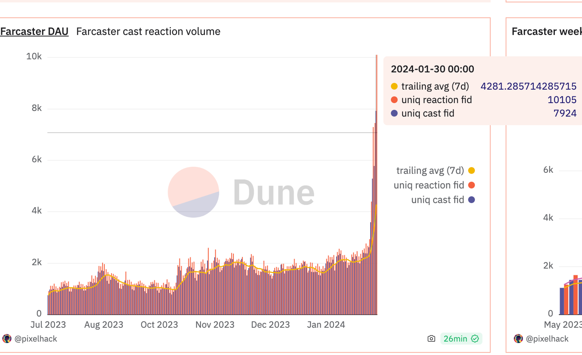 由 a16z 领投的去中心化社交平台 Farcaster 最近推出了新功能 "Frames" ,激发了前所未有的应用开发热潮,并带来了 DAU 的新高。与加密行业中的大多数热点不同,这一次 Farcaster 吸引的主要是开发者,进而促进了更多的终端用户互动,甚至获得了硅谷创业导师 Paul Graham 的点赞认可。