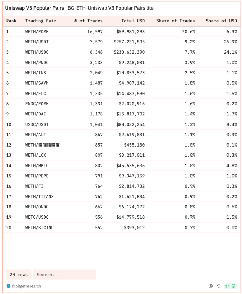 PORK(Token):Kol PAULY 发布的 PEPE Fork 版本项目,3 天价格持续上涨,市值突破 2 亿美金,链上 24 小时交易量达 6000 万美金,今日受 PEPE 图画创始人 Matt Furie 创作新画点评,热度仍在发酵,仅过去 24 小时价格就上涨 133%,目前价格仍在高位。需注意该项目在发布初始,创始人提前买入了高比例代币,目前尚未退出。