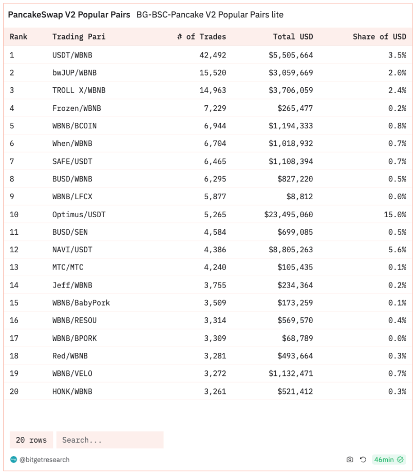 BSC 链上大部分活跃高交易量的代币都是近期热点的仿盘,用户需要注意甄别。