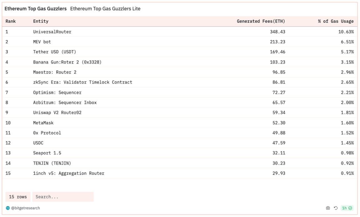 以太坊主网目前主要的 Gas 消耗来自于以下几大类:1. Uniswap,2. 稳定币 USDT,3. MEV,4. 各类 Layer2 排序器,5. TG trading bot。