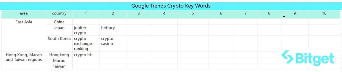 22.Google 搜索热词飙升 - 东亚、南亚、东南亚、港澳台