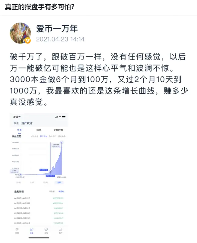 3000本金8个多月到1000万,从资产低点至高点涨幅5万倍+