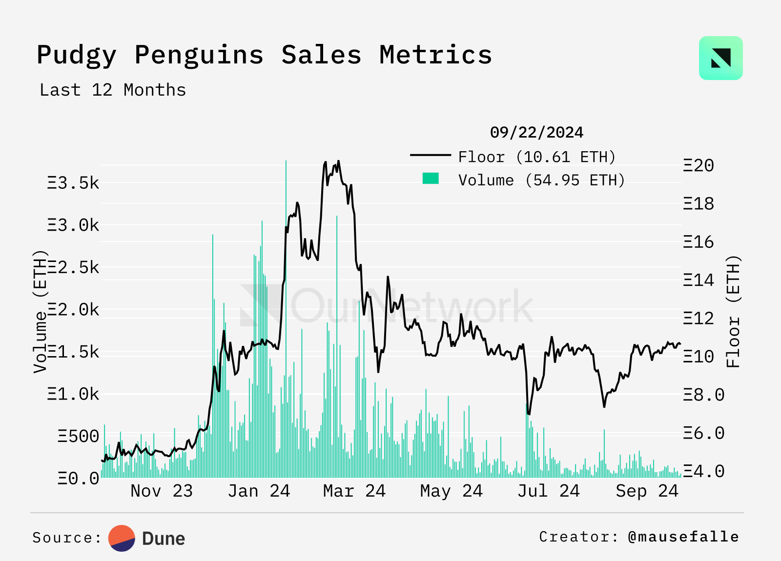 Pudgy Penguins 目前占所有 NFT 交易量的十分之一