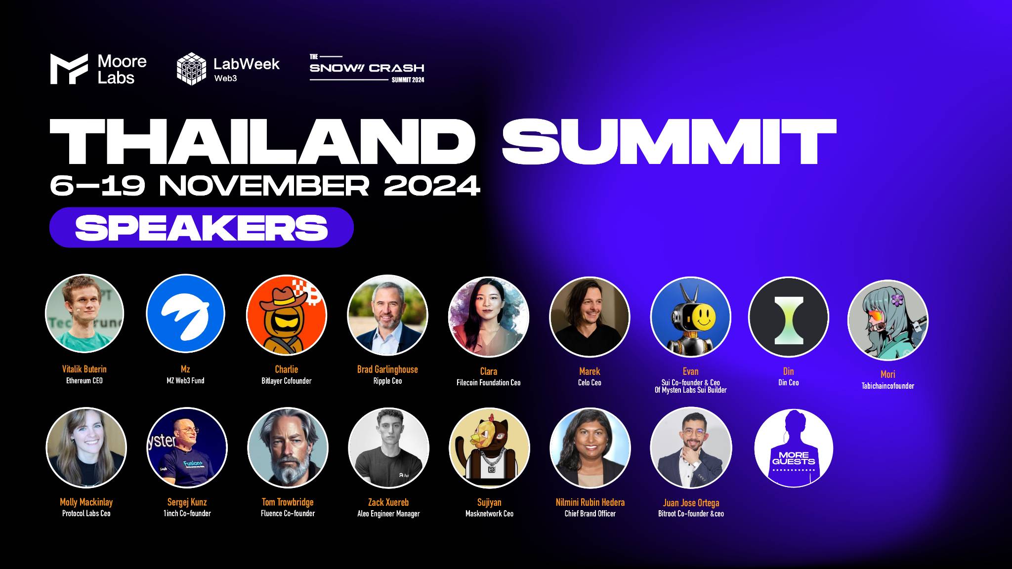 我们诚挚邀请全球的区块链爱好者、开发者、投资者和企业家们共襄盛举。无论您是想了解最新的技术趋势,寻找投资机会,还是希望与行业精英建立联系,Thailand Summit 2024都将是您不容错过的盛会。