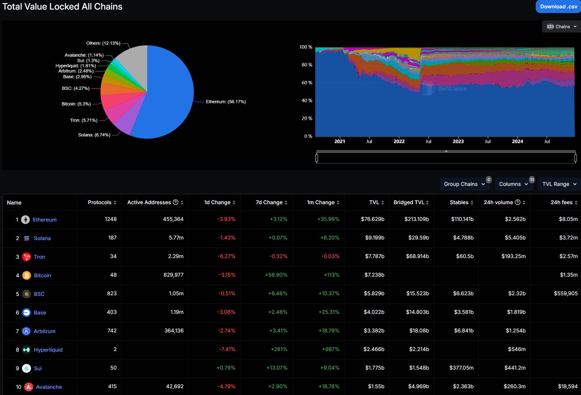 生态TVL 在所有 Layer 1 区块链中排名第8,目前总锁仓价值(TVL)为 24.66 亿美金,加上一些跨链协议,此前总 TVL 已突破 30 亿美金但生态项目匮乏。