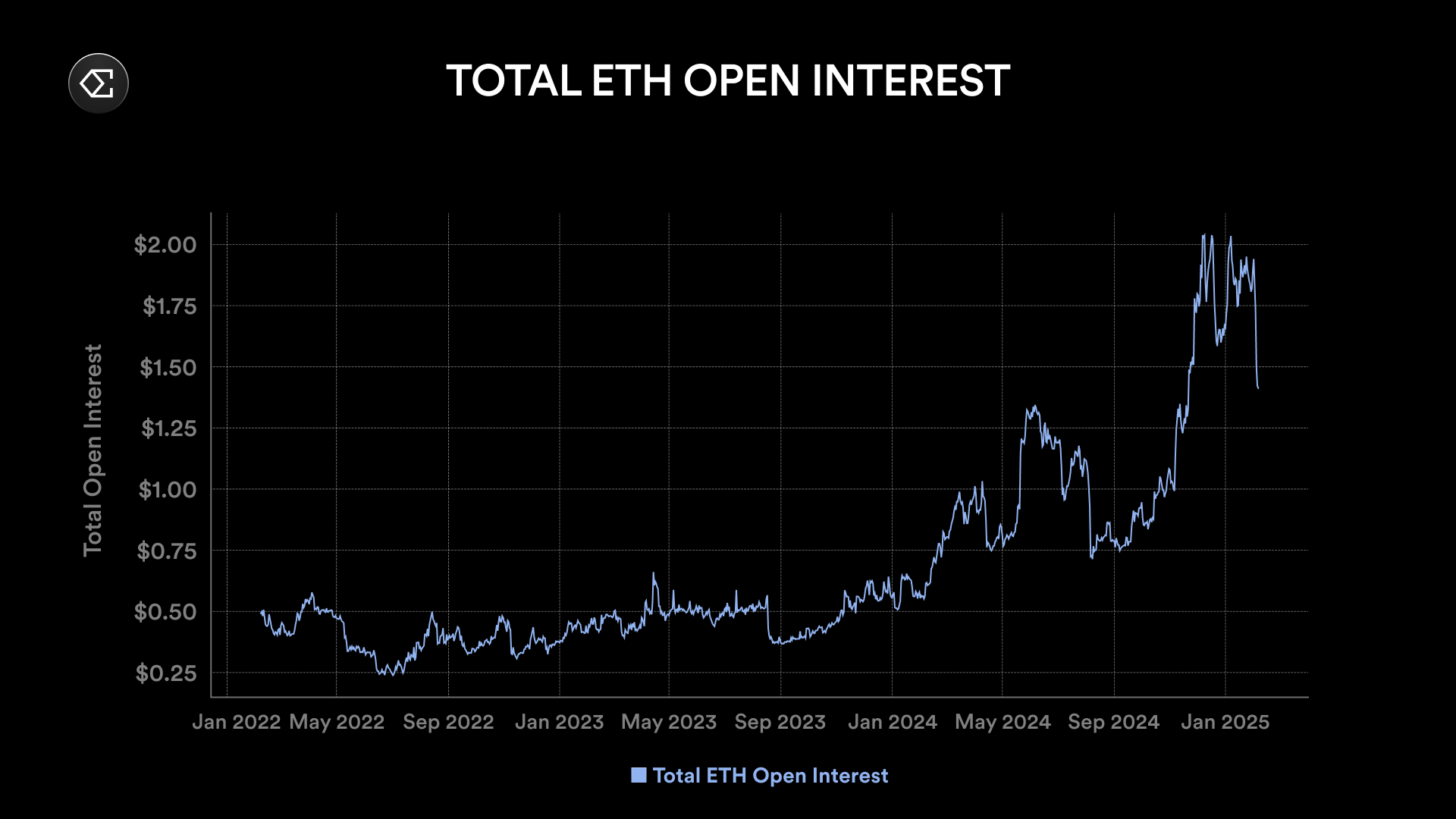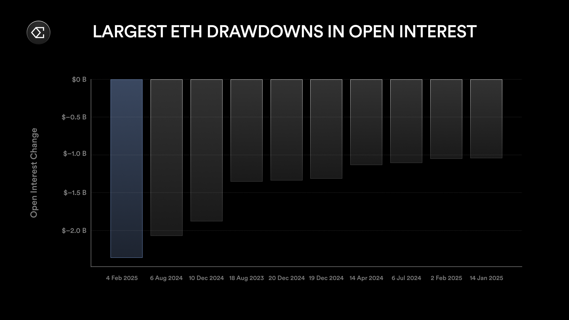 过去一周内,ETH 未平仓合约总计减少了超过 50 亿美元,降幅超过 25%。