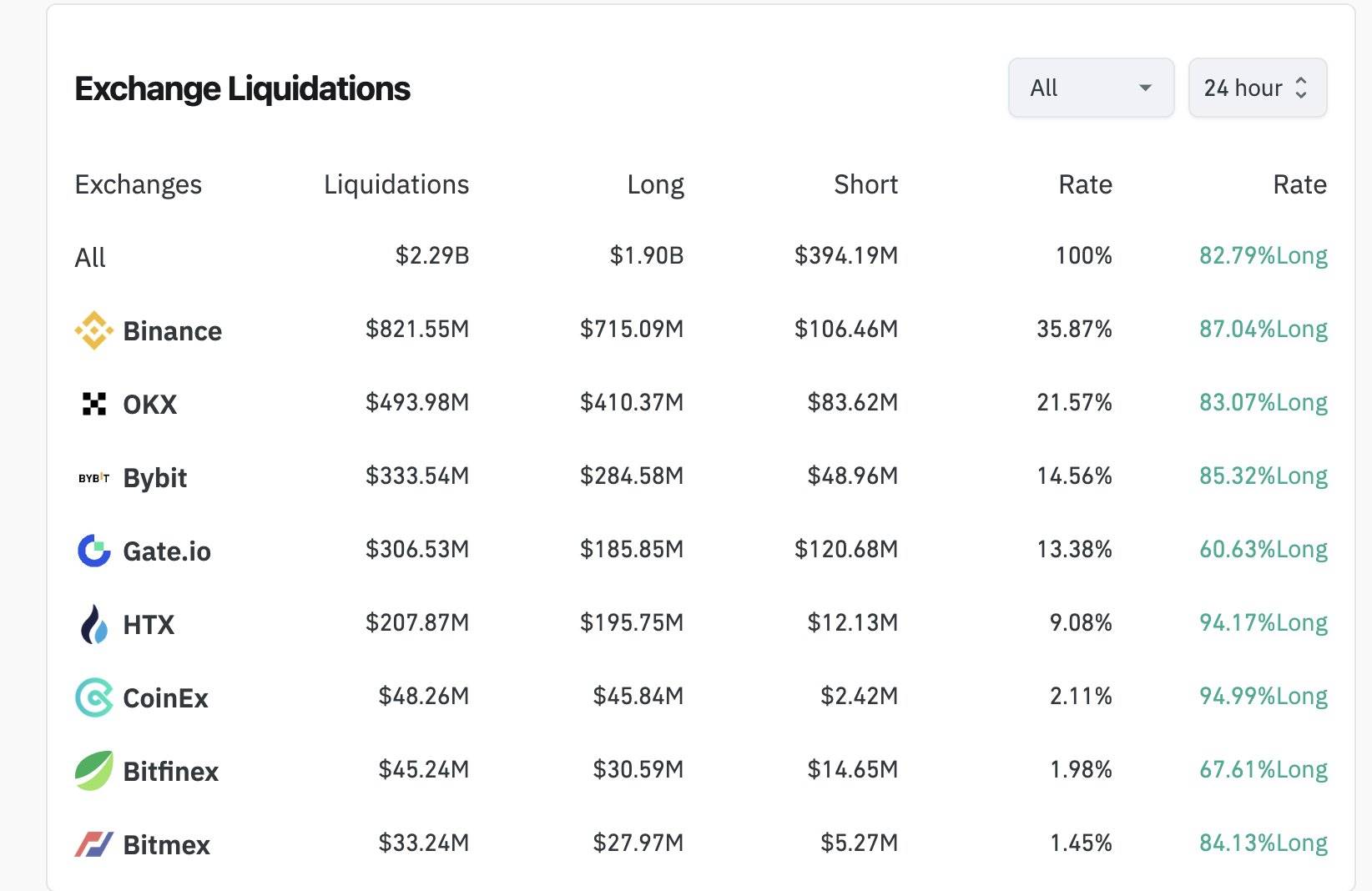 然而,Bybit 创始人兼首席执行官在抛售后发推文表示,仅 Bybit 平台就发生了 21 亿美元的清算,而 Coinglass 报告的数据仅为 3.33 亿美元。