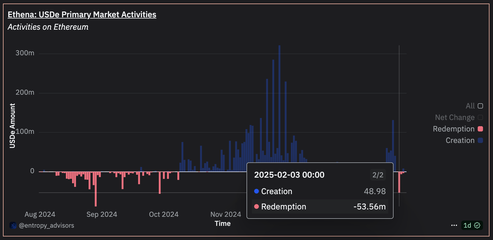 • 尽管市场剧烈波动,但 USDe 稳定币表现稳定,与其他法定稳定币保持一致。