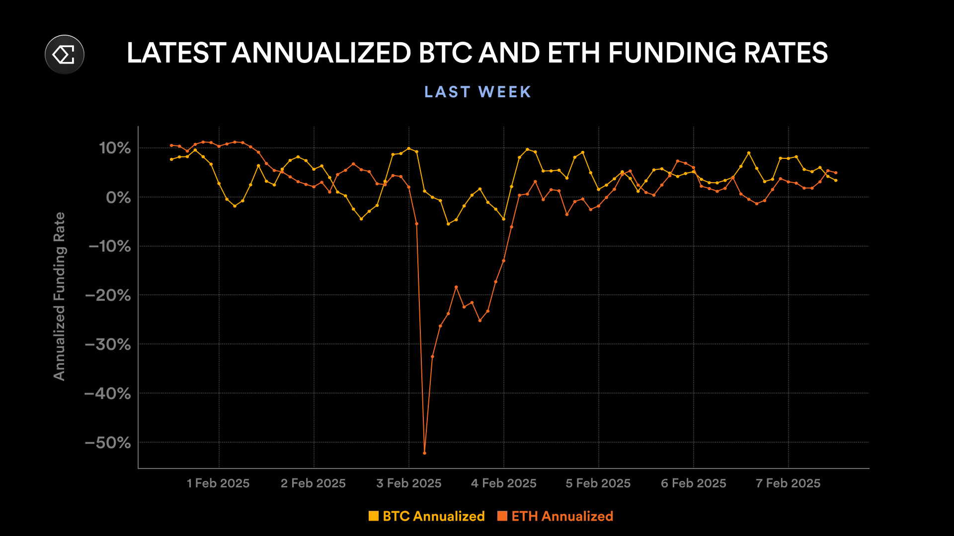 随着市场波动加剧,以及不同交易所和资产之间表现的显著差异,Ethena 必须迅速应对永续期货市场的结构性变化。过去一周,ETH 合约的资金费率显著低于 BTC 合约,而两者的资金费率都低于年初的水平。