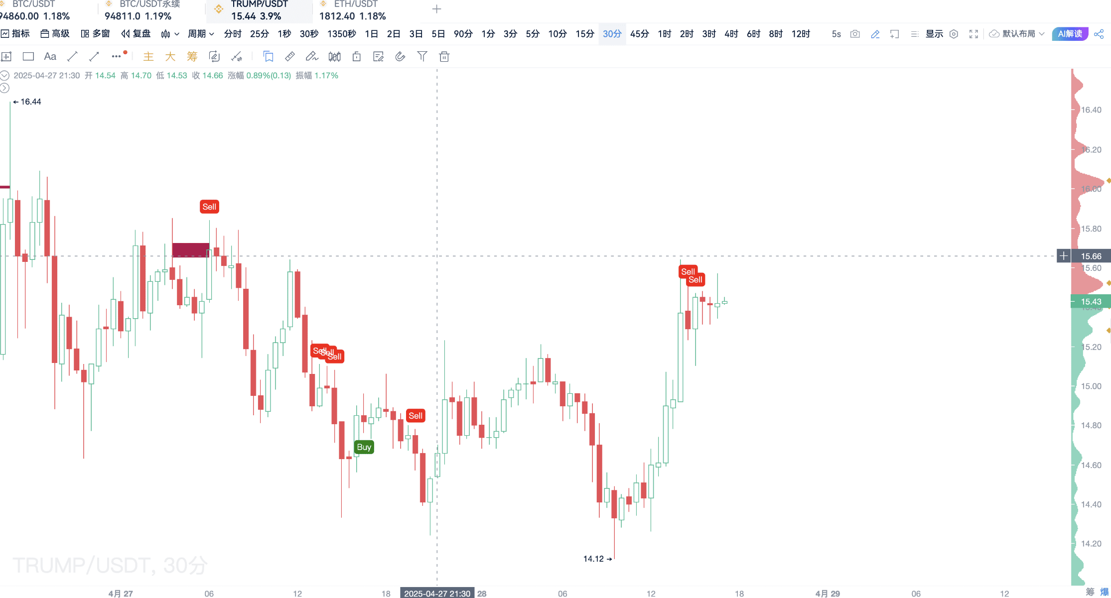 教你们个狠招:开启大单预警,监控挂单/成交/撤单,用自定义指标自动交易,最近爆火的TRUMP币,就是靠这招抓住主力动向!