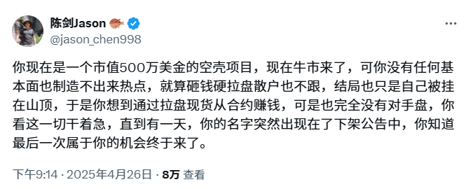 “下架币安”的消息对项目而言,通常是巨大的利空 ——下架意味着流动性减少、交易量萎缩,代币价格往往应声下跌甚至一蹶不振。