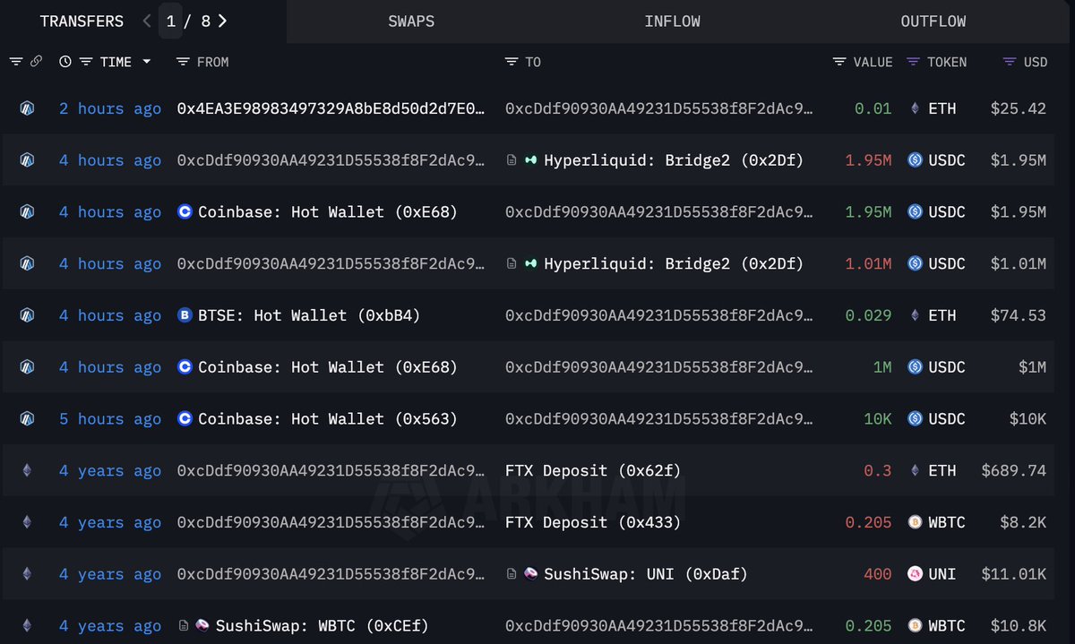 一只鲸鱼在沉睡了4年后醒来,从#Coinbase提取了296万美元的$USDC,并将其存入#Hyperliquid。