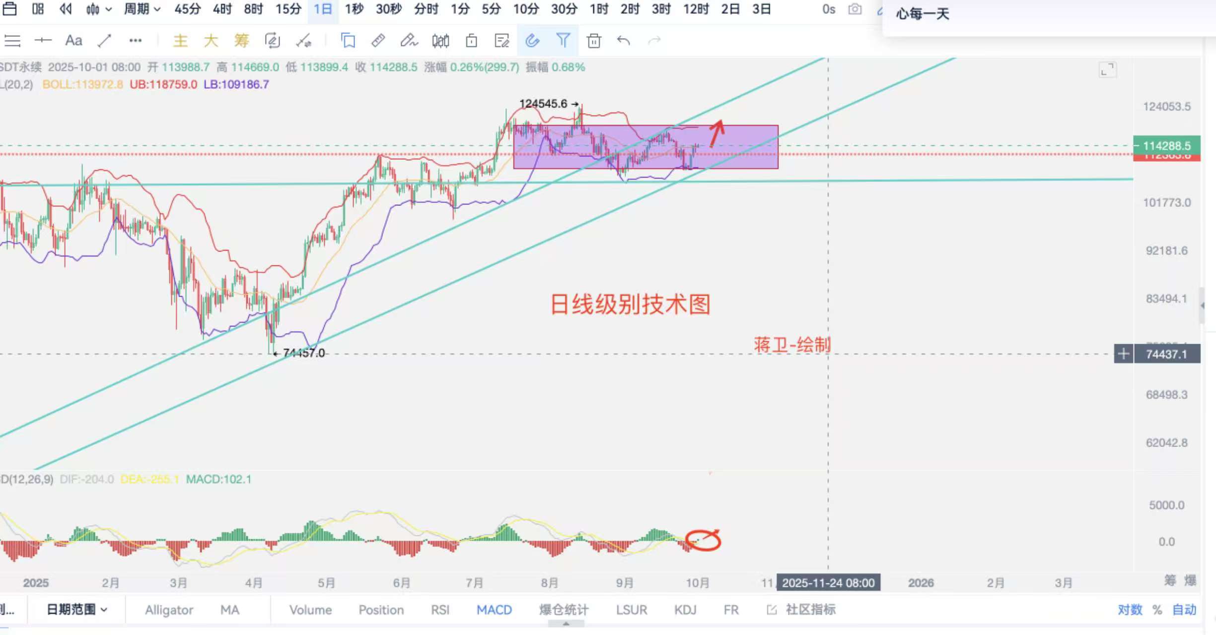 日内可以围绕114000-113700区域分批看涨,目标继续上看116000关口