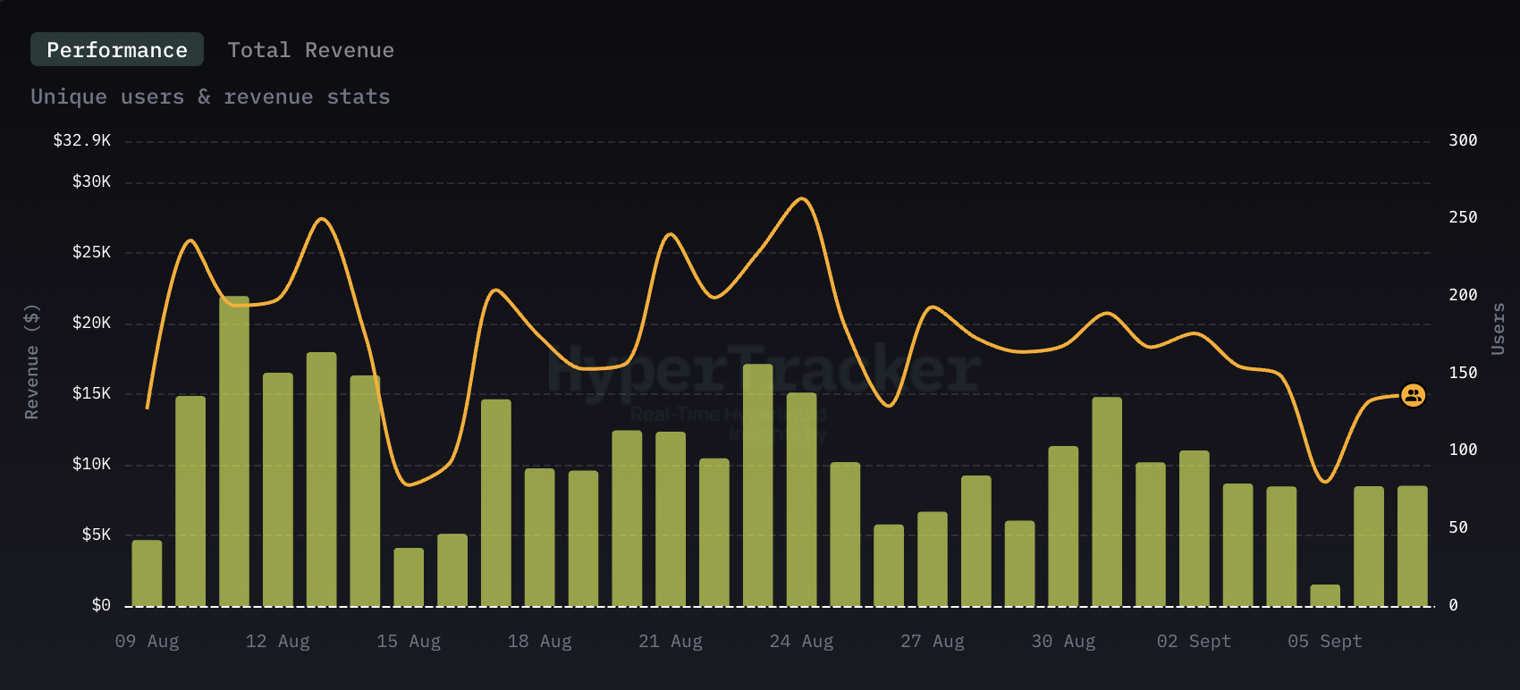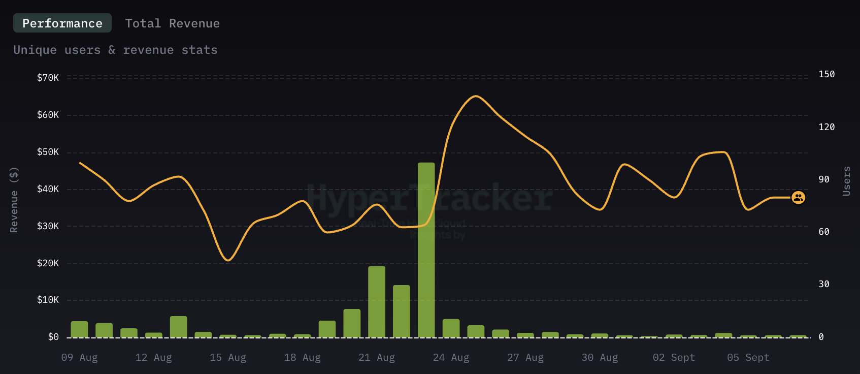 总体而言,所有相关移动交易前端(包括部分未提及的应用)的每日合并平均收入约为 5 万美元,相当于约 150 万美元的月经常性收入(MRR)。这些应用约占 Hyperliquid 永续合约总交易量的 3%-6%。作为参照,Hyperliquid 的 HLP 保险库占比约为 5%。