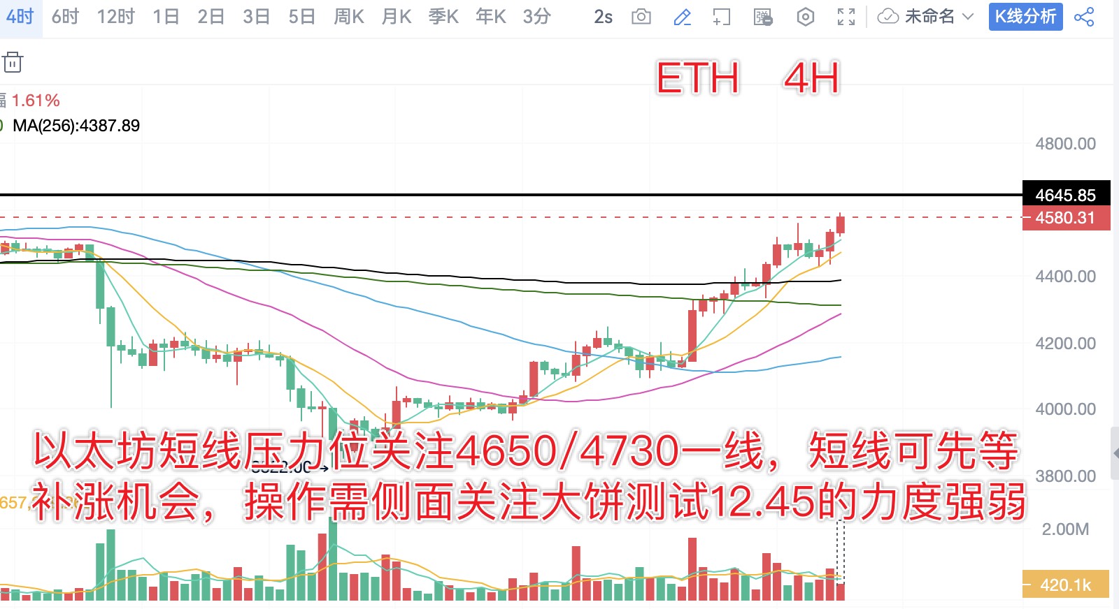 ETH :4520/4450多,目标4650/4730;空单可考虑在4650/4750一线参与