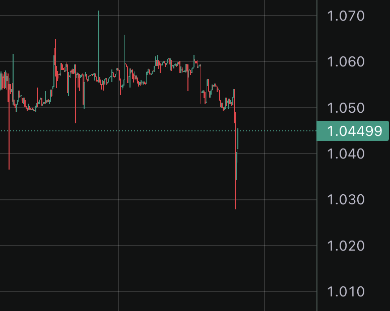 在USDai宣布在2天内筹集1亿资金后,价格在几分钟内降至1.027,现在回升至1.044。