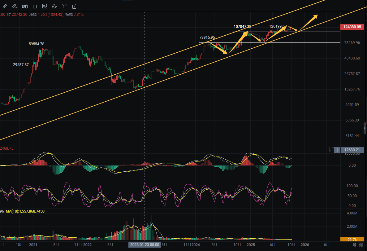 最近粉丝关注最多的问题就是,老师币价会涨到哪里?会突破130000么,我只能说牛市行情不言顶,看看日线级别都已经6连阳,试问你错过多少次上车机会?随着美国政府停摆进入第二周,当前的数据发布中断(9月非农就业推迟发布是典型例证),加剧了投资者的不确定性。本周还将迎来美联储重要讲话,以及周三公布的联邦市场委员会会议纪要。目前来看彦灵预计10月28日至29日的会议还是会将降息25个基点,且12月再次降息的概率也高达82%,所以短期利好币圈因素众多。