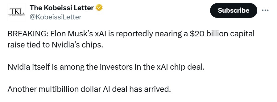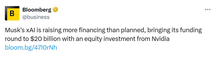 Nvidia计划向xAI投资高达20亿美元——彭博社报道