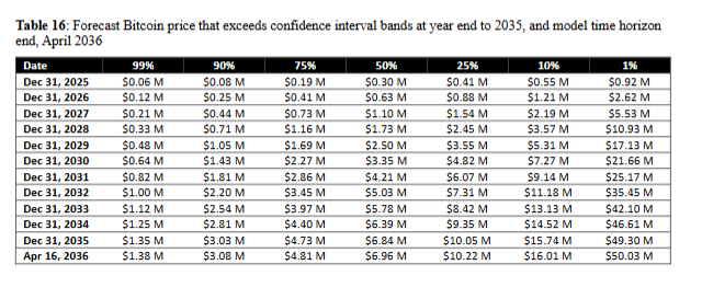 来自 Satoshi Action Education(非营利研究组织)的最新研究论文显示,基于纯粹的供需分析,比特币在2036年有75%的概率超过481万美元。这比机构们最激进的预测还要高出25%。