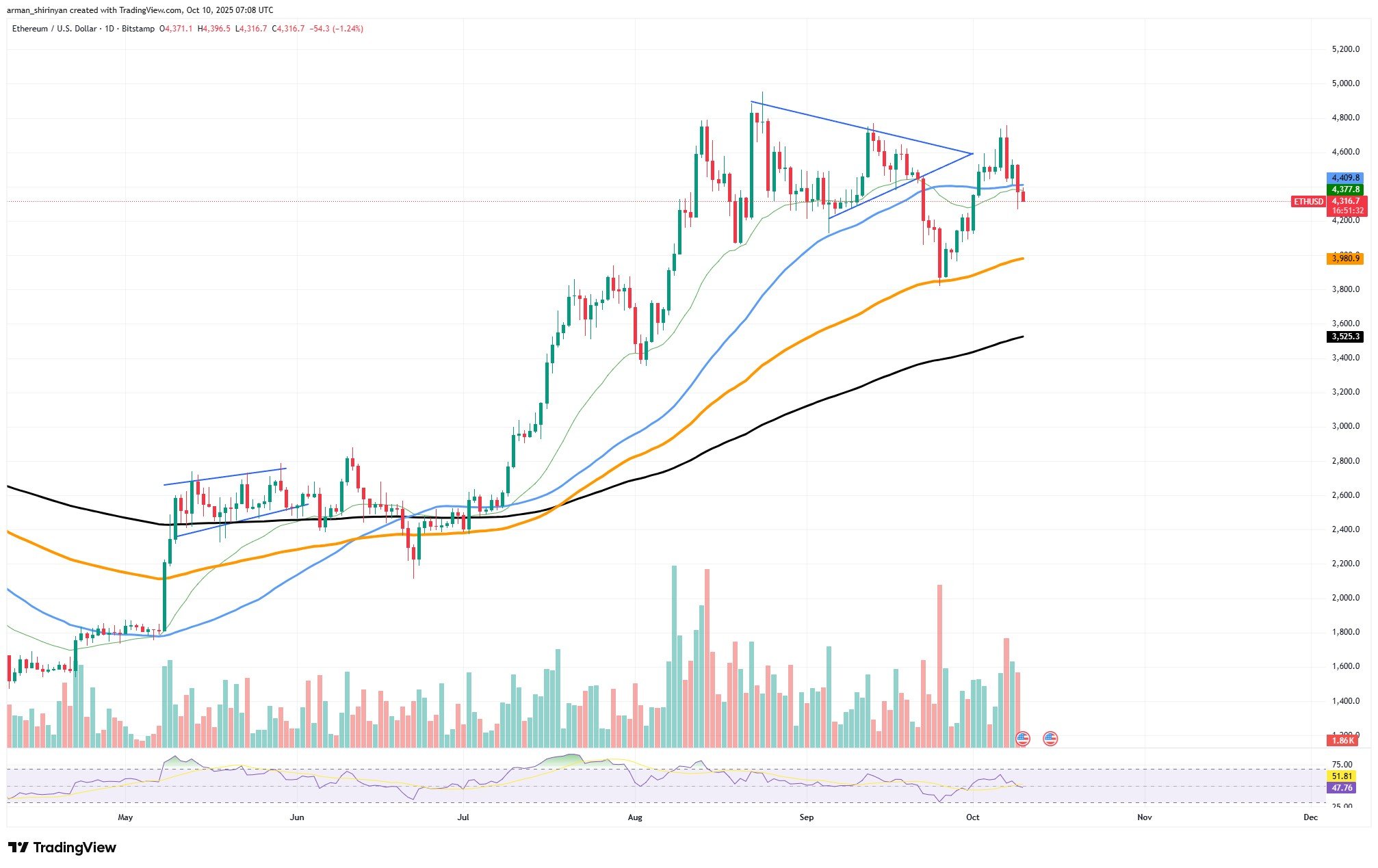 随着技术指标暗示可能在4,000美元和3,850美元之间整合,以太坊在本月早些时候突破4,400美元区间后似乎正在失去动能。这一观点得到了ETH/USD图表的支持。较大的持有者可能正在获利了结,因为交易量开始下降,RSI徘徊在中性区域。