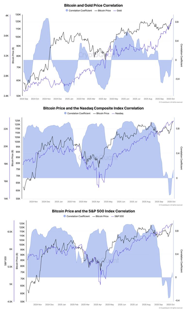 在撰写本文时,比特币在过去一天内下跌了约0.8%,目前交易价格为122,000美元,根据加密货币价格聚合网站CoinGecko的数据。本周早些时候,BTC攀升至新的历史最高点超过126,000美元。但最近,标准普尔500指数纳斯达克100指数黄金白银表现优于比特币
