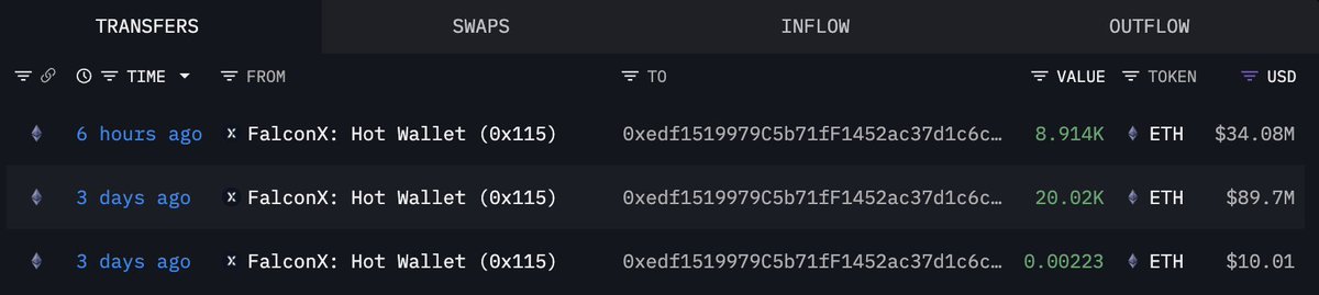 两个新钱包(可能属于 #Bitmine)从 #FalconX 和 #Kraken 提取了 33,323 $ETH(价值 1.264 亿美元)。
