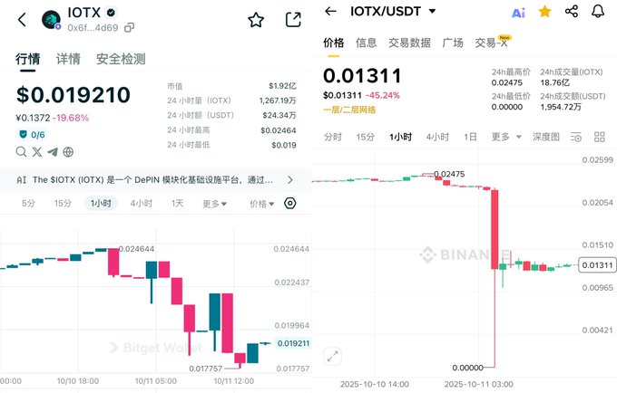 10/11 05:20 在特朗普威胁对中国加征 100% 关税后,市场恐慌性下跌,许多山寨 -80%+,可惜警报并没有叫醒我;