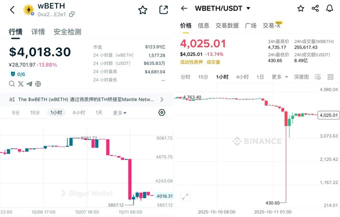 10/11 11:50 爆仓后我闷闷地刷着推特,推上许多老师在讨论 CEX 离谱的天地针与 USDe 脱锚,出于好奇我对比了下 CEX 与链上:CEX 插针极深,很多人想抄底却因为宕机买不进去;而链上的价格波动没那么夸张,交易也能相对顺利完成。