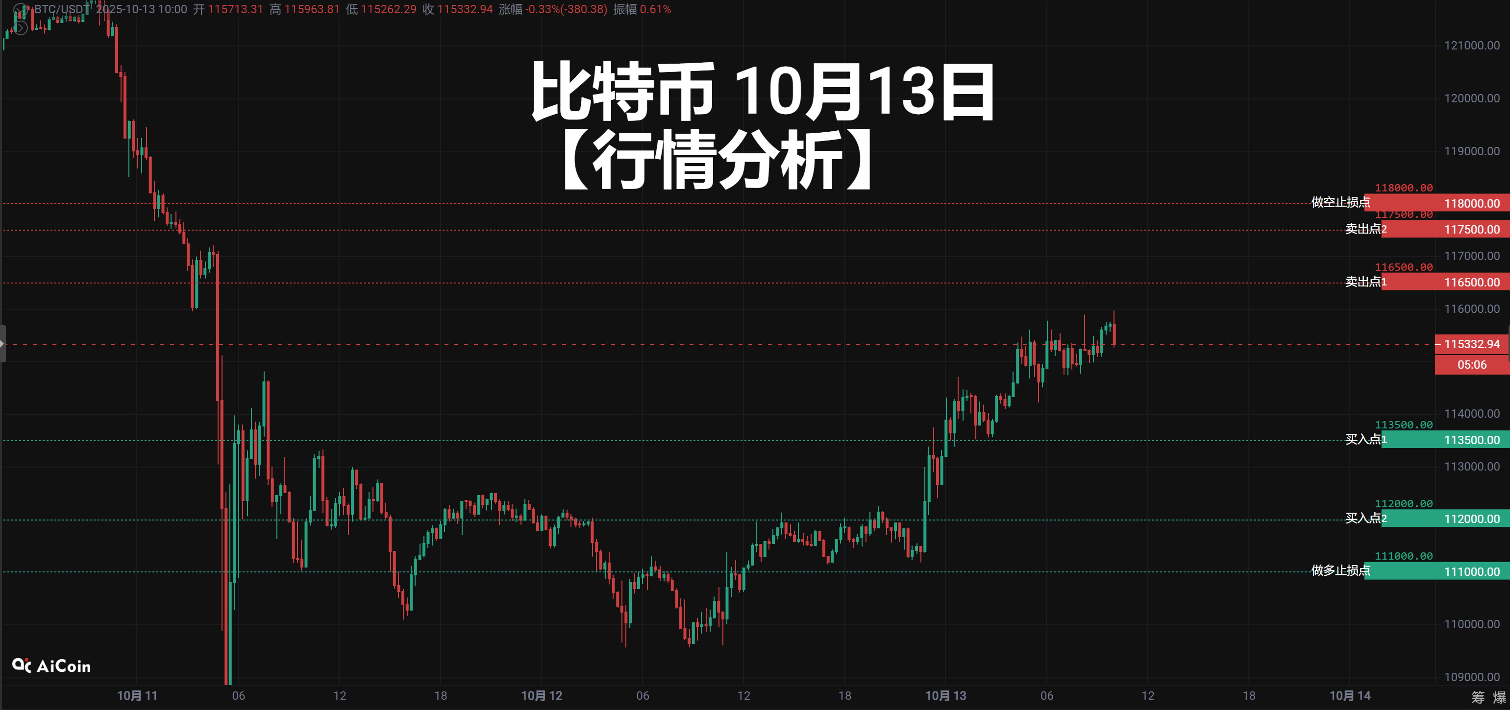 • 日线级别显示,10月10日出现长下影线的暴跌探底(最低触及102000),随后连续三天反弹修复,形成V型反转雏形。