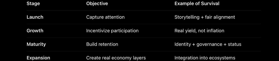 生存要点:讲故事 + 公平对齐 → 真实收益,而非通胀 → 身份 + 治理 + 地位 → 融入生态系统