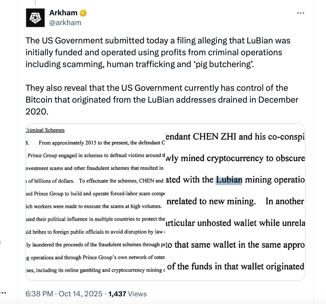 虽然其他报道将127,271 BTC与更广泛的犯罪调查联系在一起,但今天对加密圈的新闻价值在于Milky Sad的联系本身:阿卡姆的“卢比安黑客”标签是公开的,而像ZachXBT这样著名的侦探正在指向该数据集,因为政府在推进其案件。谁最终在每一步控制密钥的问题仍然悬而未决。