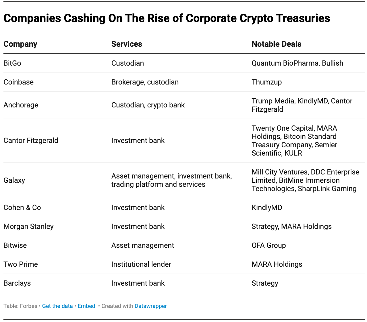 与此同时,华尔街已经开始为这股加密货币热潮提供资金。在特朗普总统领导下,政策环境更加友好,监管也更加清晰,共同基金巨头 Capital Group、对冲基金 D1 Capital Partners 和投资银行Cantor Fitzgerald等机构也为企业囤积加密货币提供了资金。