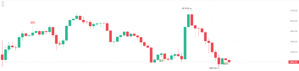 以太币是市值第二大加密货币,下跌5.3%至3,859.65美元,跌破4,000美元的关键关口。
