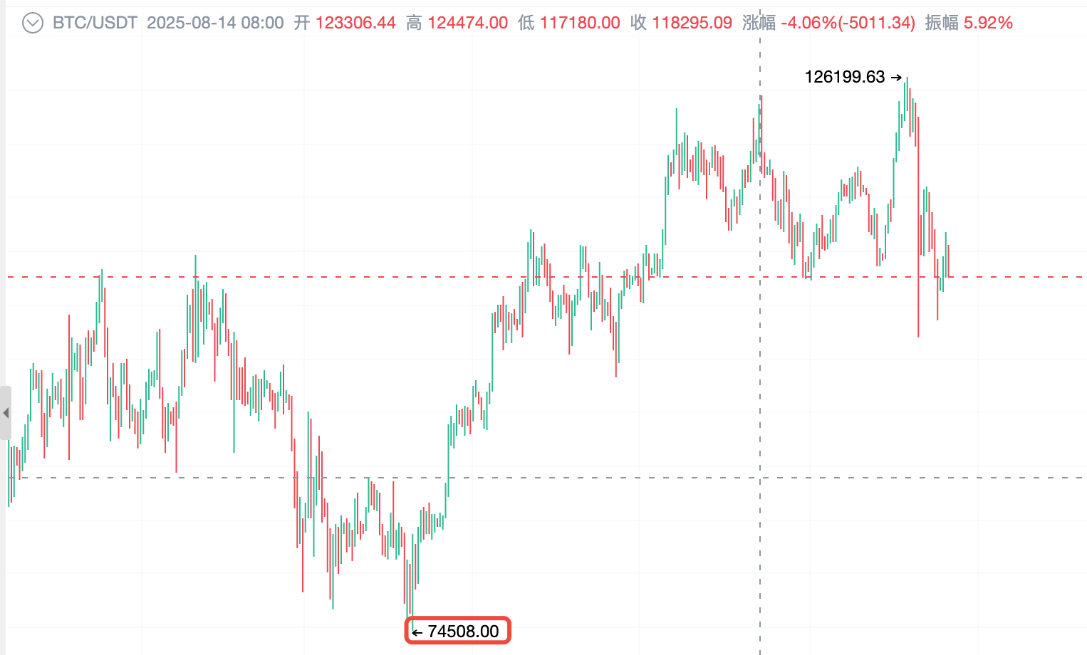 图6:比特币四月最低点(数据来源于AiCoin)