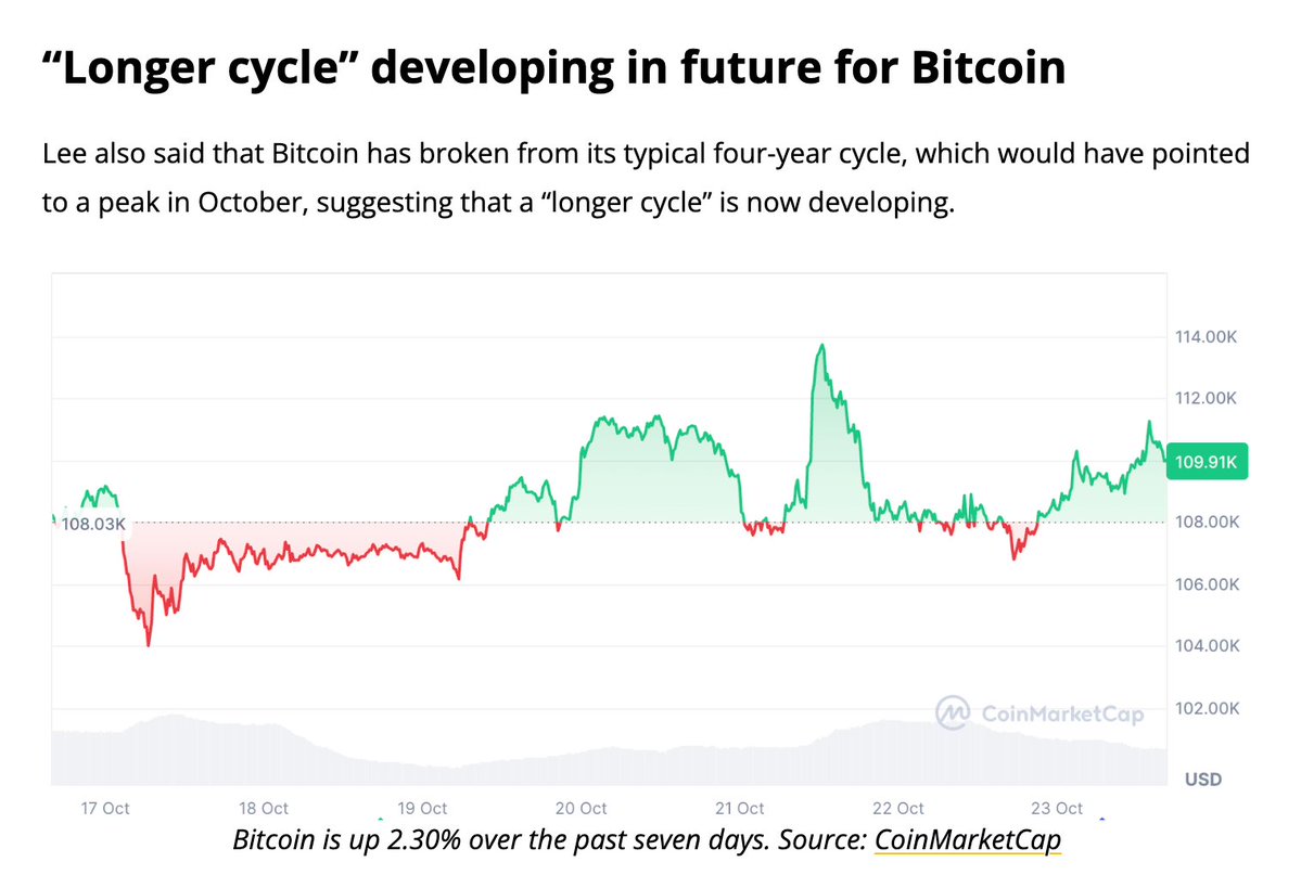 当然也有部分人对现在还是牛市信心慢慢,因为按照四年周期,现在并未走完,至少要到2026年才算基本模型。