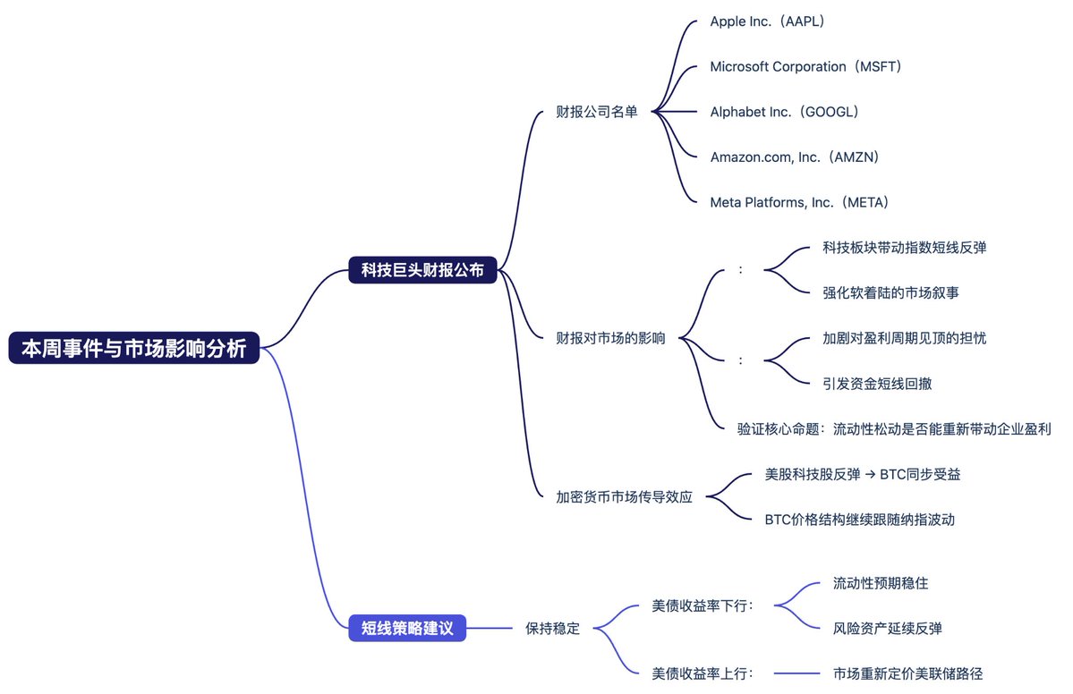 在短线策略上,我个人认为更适合保持稳定,美债收益率如果在财报后继续下行,说明流动性预期稳住,风险资产还能延续反弹,反之若收益率重新走高,说明市场开始重新定价美联储路径。对于BTC而言,价格结构可能继续跟随纳指波动。