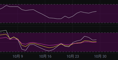 Cci上看,随着行情连续两天收阴,使得曾经站上零轴的cci跌破了零轴,这里我们就认为没有站上,既然行情在如果关键的地方没能站上关键位,那后续行情能否继续保持多头就要打一个问号了。