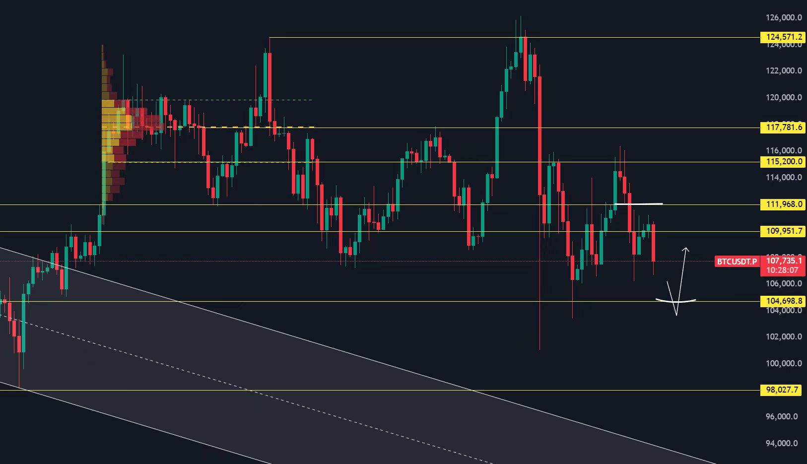 巨鲸爆仓警示风险,多空博弈聚焦关键支撑 一、市场消息面:风险事件与政策预期交织 1、巨鲸爆仓引警示:100%胜率巨鲸首次亏损,不仅亏完前期所有盈利,目前仍浮亏超1000万;“麻吉大哥”亦爆仓1500万,凸显严格设置止损对风险控制的核心作用。2、主力操作动向:“1011内幕哥”在昨晚市场暴跌后,选择加仓做多BTC(比特币)与ETH(以太坊),多空分歧持续。3、宏观政策预期:美国政府或于近期恢复运作,后续需重点关注非农就业数据、失业金数据等宏观指标对市场的影响。 二、技术面分析:关键支撑承压,主流币分化明显 1、整体市场走势 ① 昨晚BTC直接刺破关键支撑位106000,ETH跌破3600,SOL跌破170;若今日多头量能持续疲软,BTC下探100000关口或临近。② 尽管BTC刺破106000属于“假突破”,此前判断箱体下轨存在短多机会,但经过昨晚暴跌后,短线做多需极度谨慎。③核心观点:在BTC未有效跌破106000的前提下,仍维持“大周期箱体运动”的判断。 2、主流币种分化 ① ETH、SOL等币种已跌破自身最重要支撑位,技术面呈现走弱信号。② 主流山寨币表现更弱,当前几乎无安全接多空间,选择“高空策略”盈利概率更高、空间更明确。