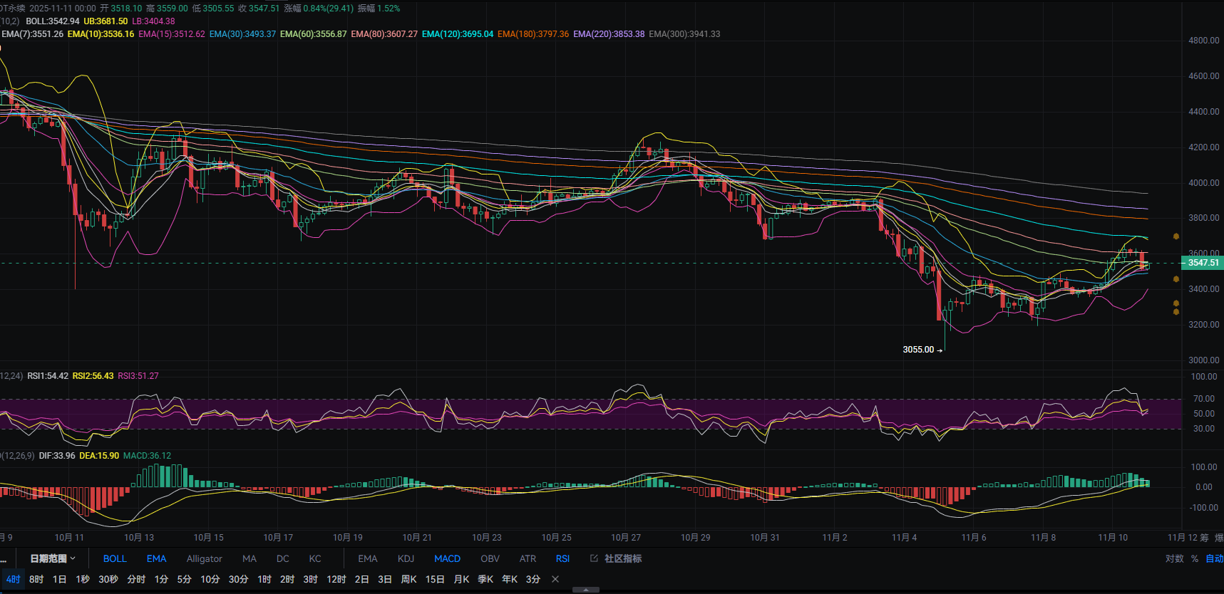 11.11张历辉:以太坊支撑上移能否二探成功继续大涨!今日以太坊(ETH)最新行情分析及操作建议!