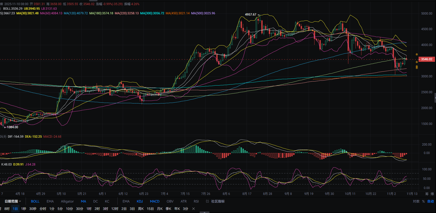 张历辉北京时间11月11日2点27分编辑:以太坊行情分析及操作建议: