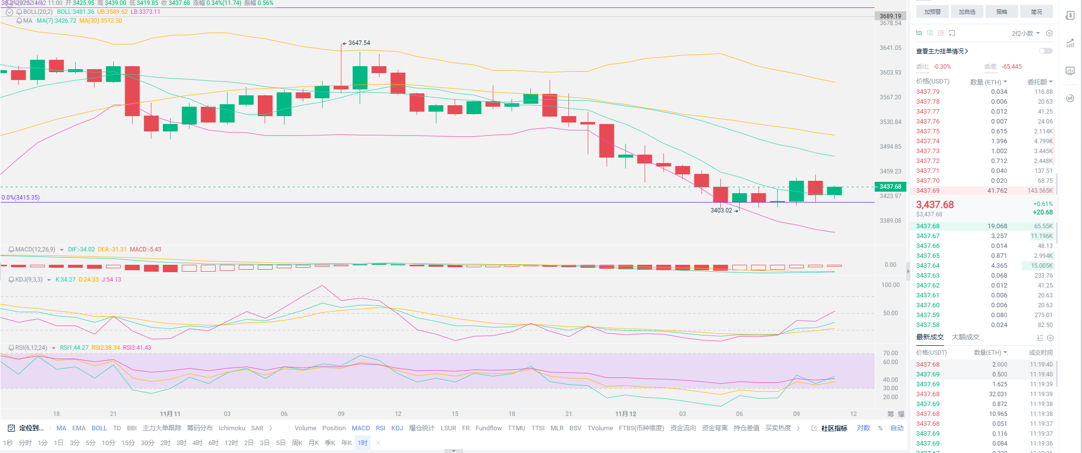 行情基本回到抬头的区间,昨日文章写完,突如其来的消息就是老美恢复了正常。这则消息带给金融圈,是一整个利好的消息。随之而来的,就是黄金突破4100盎司,美股也是相应上涨,三大指数两位都是突破2%的涨幅,这种反弹稍微有一些出乎意料。弹起来之后稍有放心,现货几乎截至目前都是以重仓的形式,存活于场内,大家都会有一些担心。只要目前没有大量持有小币种,都还是有一定的增长空间,各位也无需过于忐忑。今日就不罗嗦太多,老崔昨日的布局,今日还需要重新接入。目前从资金来判断,SOL已经回到正轨,灰度也已经开始增持,SOL的现货ETF上周净流入达到1.37亿美刀,流入的状态都成为历史的高点。