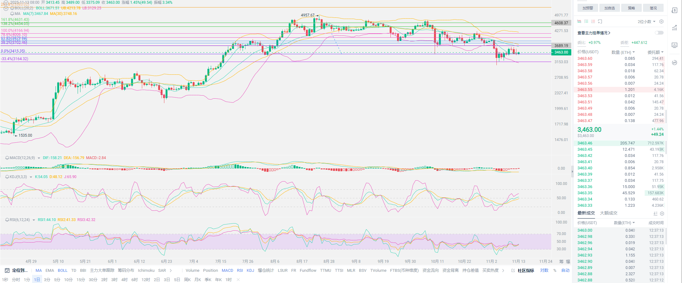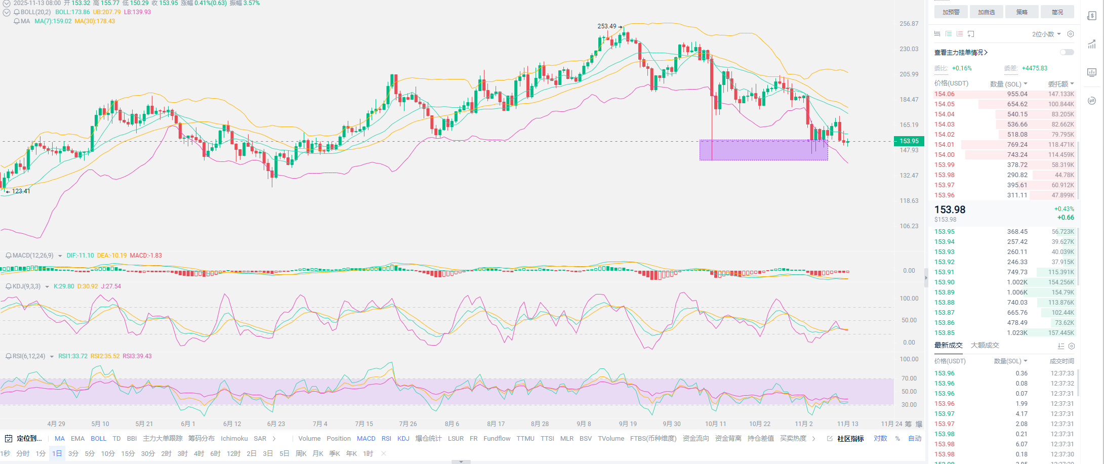 老崔总结:现阶段的币圈没有太多可讲的,更多都是推测,只有十二月的行情走出,各位才能知道今年的新高究竟位于何处?所以短期对于现货的用户的安排,就是多抄底,多持有。而合约就比较灵活,现阶段的走势,反而利于合约的发展。下方的底部十万撑住,基本就是一个来回震荡的局面,大家尽量利用这种走势,去多获取利润,对冲一下现货的亏损。今日是一个看反弹的日子,十万到105000之间的波动,各位需要耐心操作。只要止损位置放在万点左右,是不会出现太大的亏损。以太敬候佳音,以太得链上数据是所有币种当中较为出色得存在,可能下一波牛市还有新高。SOL得持有,就看各位的仓位安排,160以下需要谨慎。有足够的筹码,再行安排!文末,不懂就问,老崔会回!